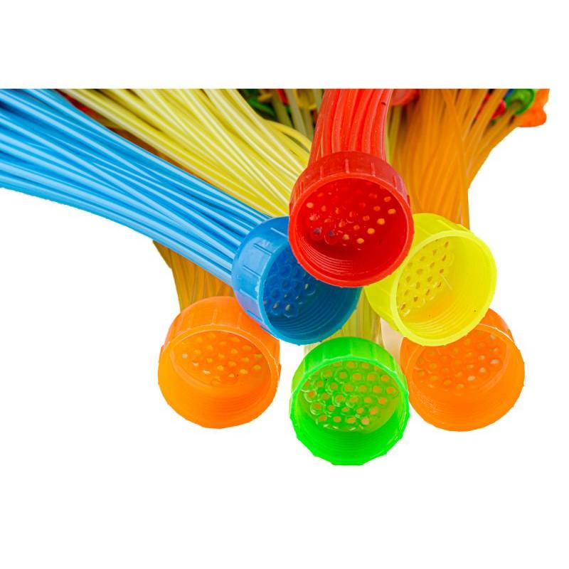 - Elementy w zestawie: 222 balony z gumkami, aplikator do szybkiego napełniania, gwint do przymocowania do źródła wody (np. kran, wąż), oryginalne opakowanie - saszetka