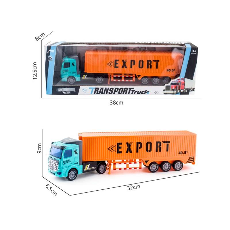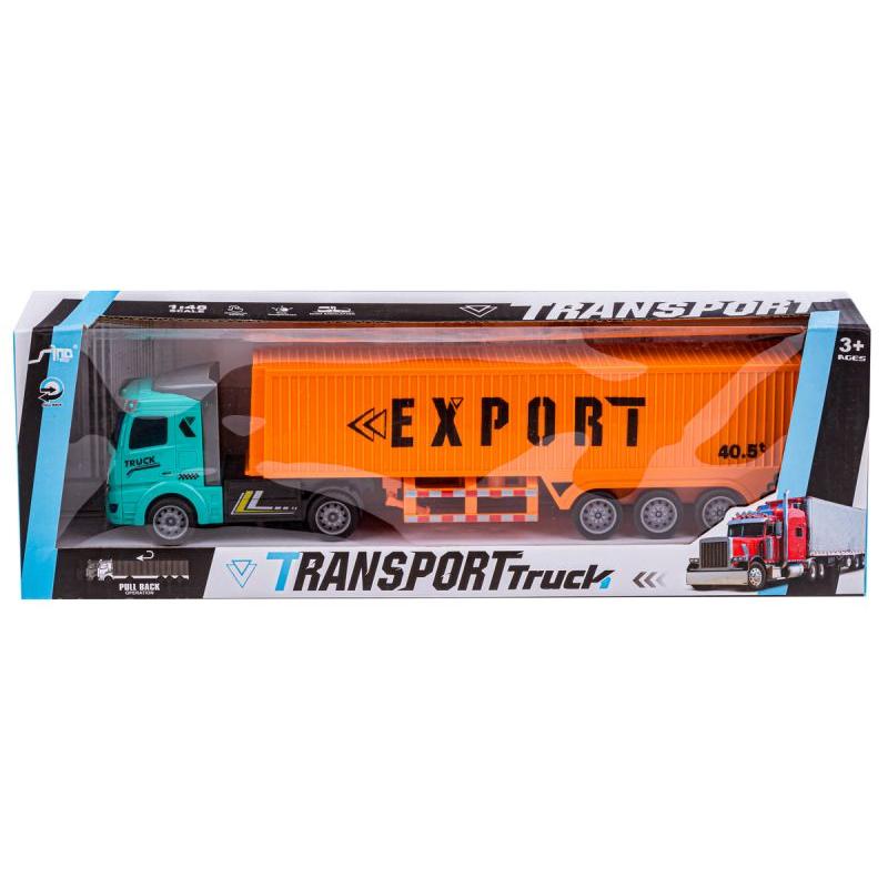 Ciężarówka 1:48, Naczepa z kontenerem — skala 1:48, naczepa 25,5 × 8 × 5,4 cm, dla dzieci powyżej 3 roku życia. Solidna zabawka z wytrzymałego plastiku, z otwieranym kontenerem i odczepianą naczepą ze składanymi podporami, zapewnia realistyczną zabawę i łatwe manewrowanie. Wyposażona w napęd Pull Back: cofnij, puść i obserwuj przyspieszenie. Brak ostrych krawędzi i certyfikat CE gwarantują bezpieczne użytkowanie. W zestawie ciągnik, naczepa z kontenerem oraz oryginalne opakowanie. Idealna jako prezent dla małego fana dużych pojazdów i kolekcjonera, sprawdza się w zabawie i aranżacji scenek transportowych.