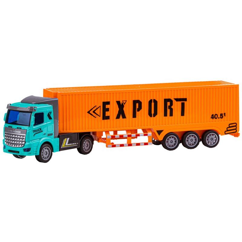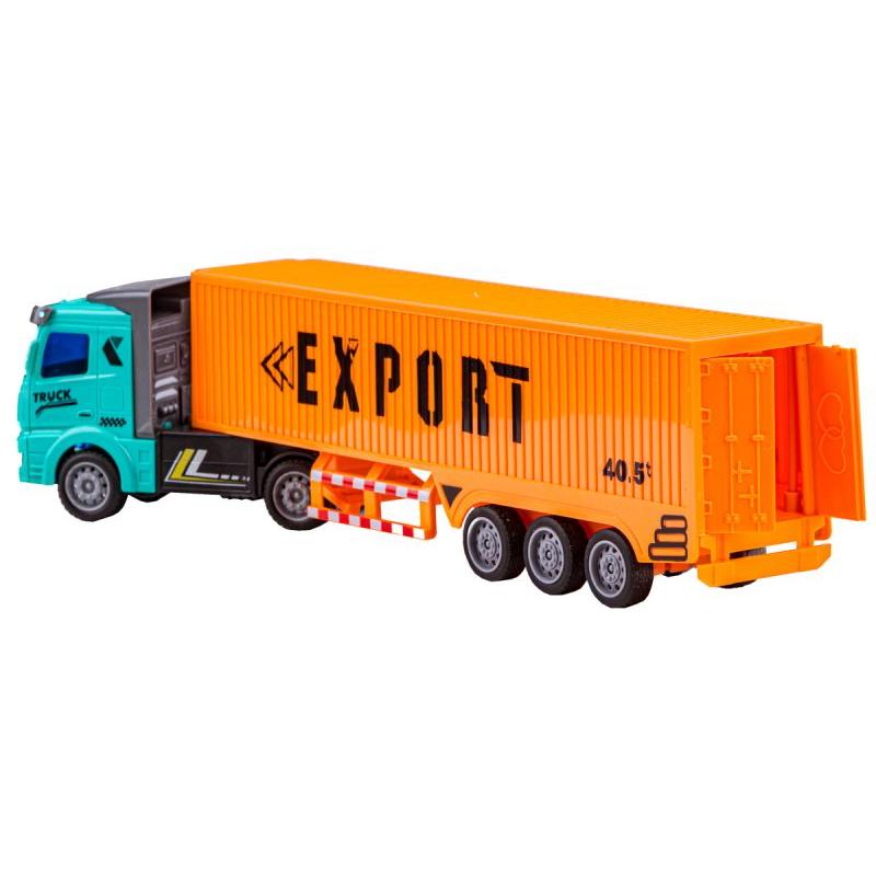 - Zawartość zestawu: ciągnik, naczepa z kontenerem, oryginalne opakowanie