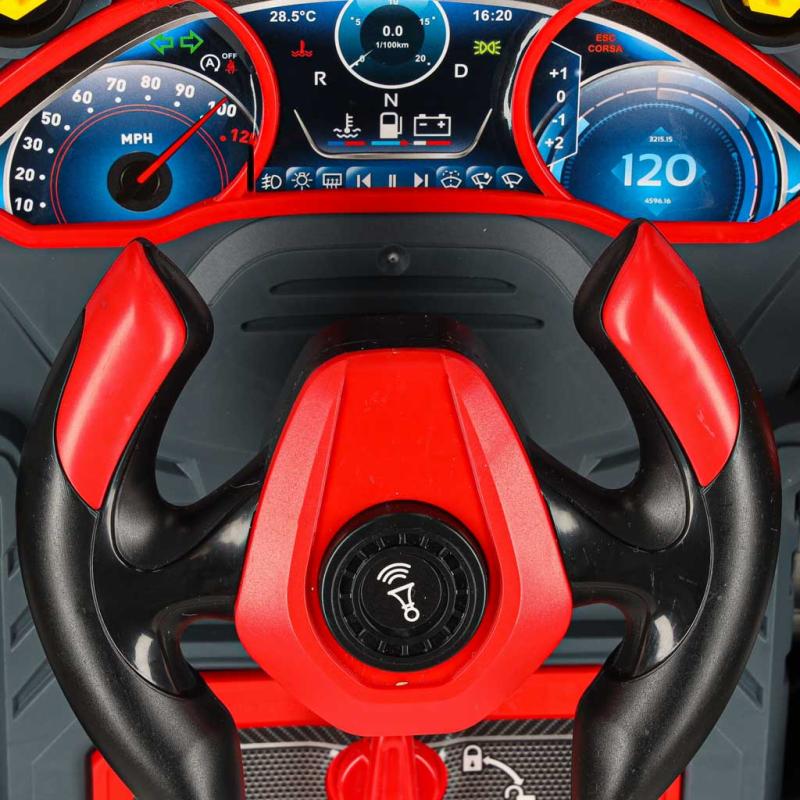Interaktywny model samochodu obejmuje otwieraną maskę z detalami silnika, które można samodzielnie odkręcać i przykręcać. Dzięki ruchomej kierownicy z klaksonem oraz skrzyni biegów, dziecko poznaje elementy prawdziwego auta w zabawowy sposób. Specjalne przyciski aktywują efekty świetlne i dźwiękowe, takie jak klakson i odgłos silnika, co zwiększa realizm zabawy.