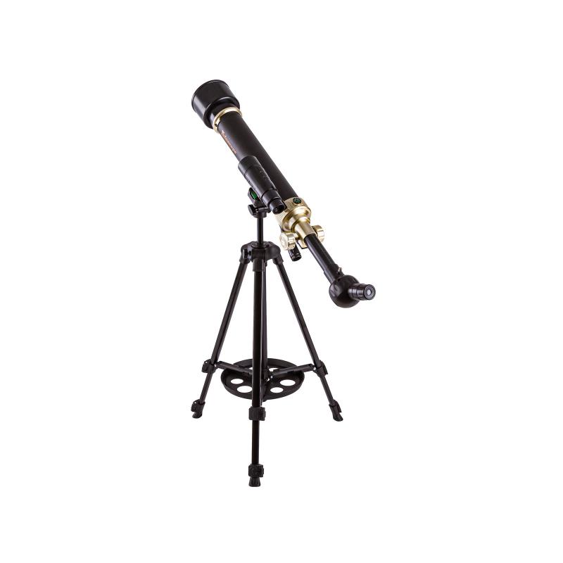 Statyw oferuje regulację wysokości, obrotu i kąta nachylenia, a mała poziomica i wbudowany kompas pomagają ustawić sprzęt precyzyjnie w terenie. Po złożeniu statyw zajmuje niewiele miejsca, co ułatwia przechowywanie i zabranie zestawu na wycieczkę lub nocne obserwacje.