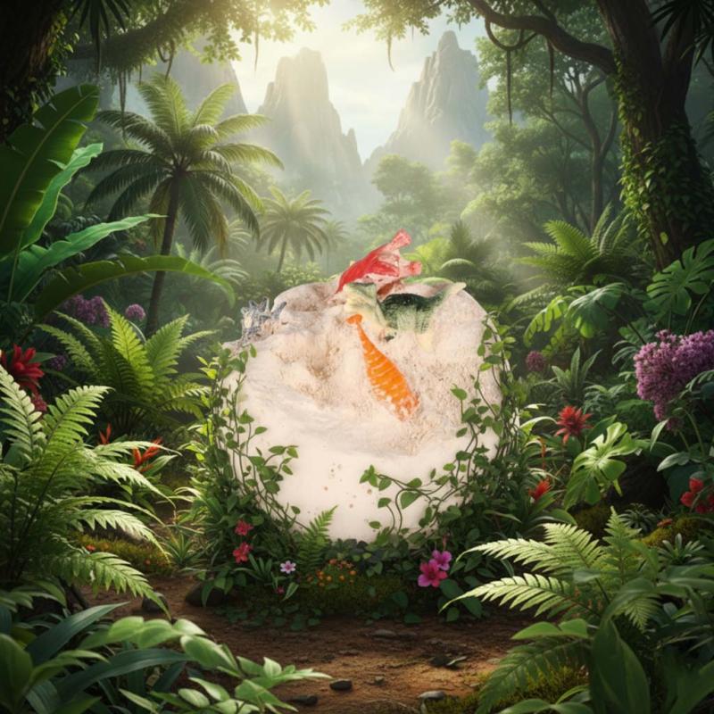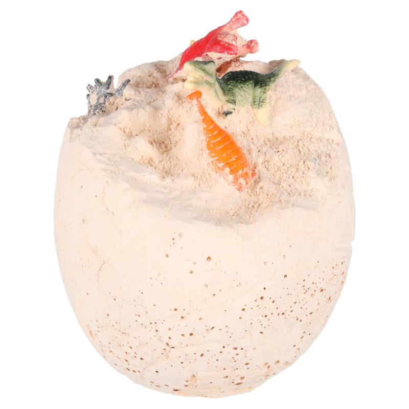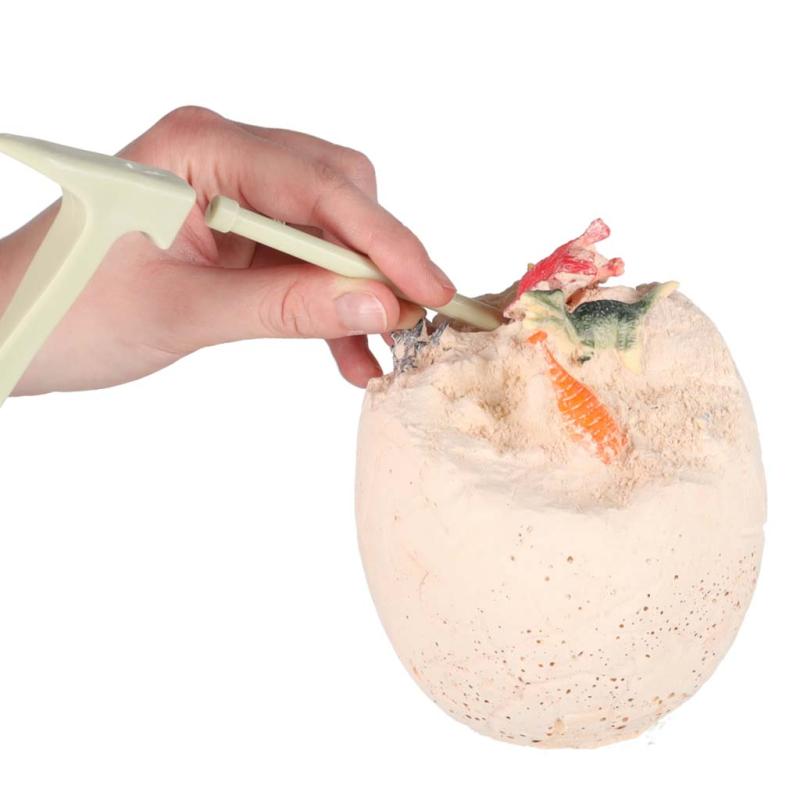 - Gipsowe jajko z dinozaurami – doskonały element do samodzielnego wydobywania 12 figurek przedstawiających różne gatunki prehistorycznych stworzeń;