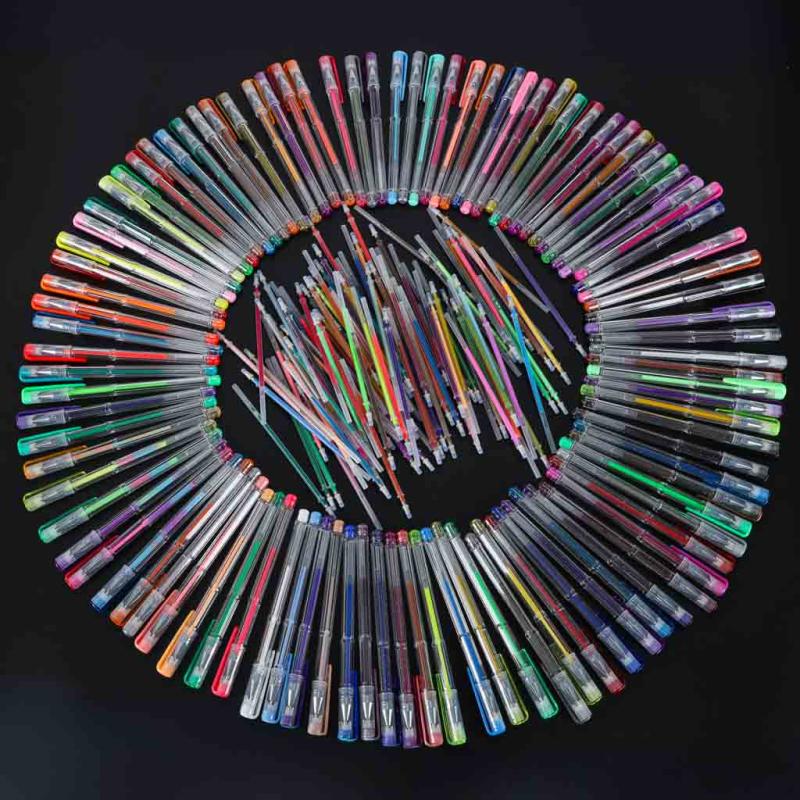 Komplet obejmuje aż 100 długopisów żelowych w szerokiej gamie kolorystycznej oraz dodatkowe 100 wymiennych wkładów. Tak rozbudowany wybór pozwala dopasować narzędzia do różnorodnych stylów kreacji – od precyzyjnych notatek, poprzez kaligrafię, aż po artystyczne projekty DIY, takie jak kolaże, kartki okolicznościowe czy rysunki. Rozkładane etui z przegródkami zapewnia wygodę przechowywania i łatwy dostęp do każdego przyboru.