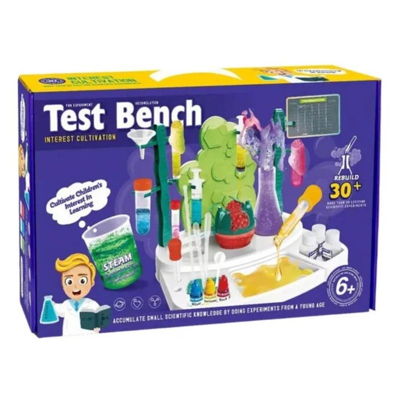 Zestaw zawiera wszystko, czego potrzeba, by przeprowadzić 30 eksperymentów, z których część można powtarzać. W opakowaniu znajdują się m.in. podstawka, probówki, strzykawki, pipety, okulary ochronne, rękawiczki ochronne oraz różnorodne pojemniki i balony do doświadczeń. Dołączono również kapsułę do erupcji wulkanów oraz materiały chemiczne niezbędne do wykonywania reakcji, a całość zapakowano w oryginalne opakowanie ułatwiające przechowywanie.