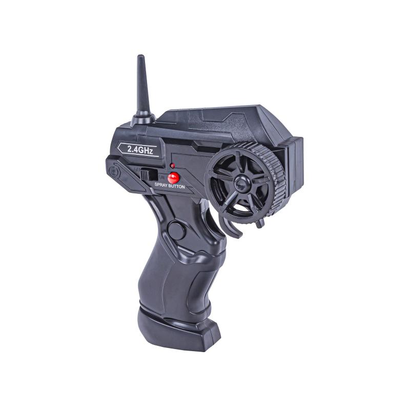 Zestaw obejmuje pilot 2,4 GHz z łatwą obsługą i funkcją regulacji parametrów jazdy, co umożliwia dostosowanie stylu prowadzenia auta do własnych potrzeb. Klasyczny sterownik z manetką gazu pozwala na płynną jazdę do przodu i tyłu, a dodatkowy przycisk uruchamia efekt pary, który imituje unoszący się dym spalin i "palonych opon". Ta innowacyjna funkcja dodaje realizmu i emocji, podnosząc atrakcyjność zabawy.