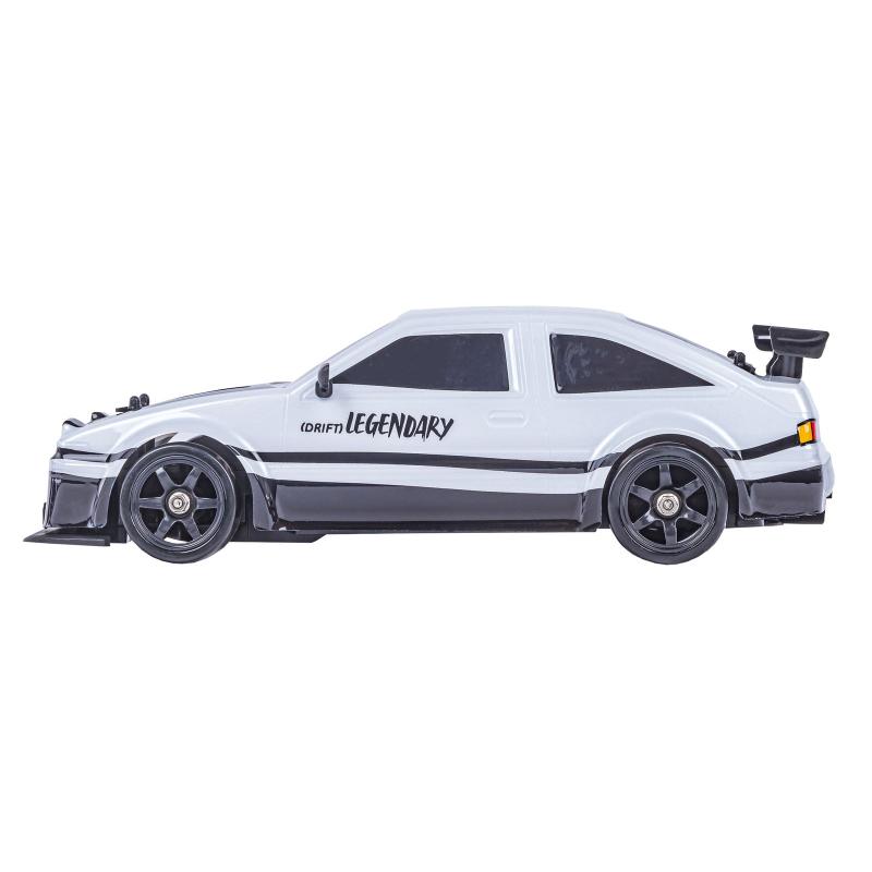 Sportowa karoseria w drapieżnej biało-czarnej kolorystyce przypomina prawdziwą Toyotę, a wytrzymały plastik odporny jest na uderzenia podczas dynamicznych driftów czy szybkich zakrętów. W zestawie znajduje się komplet opon z bieżnikiem, które doskonale sprawdzą się na standardowej nawierzchni, a niskoprofilowe i gładkie koła pomagają utrzymać kontrolę podczas poślizgów i ostrych manewrów. Tak skonstruowane podwozie 4WD oferuje napęd na cztery koła, co przekłada się na wyjątkową zwrotność i stabilność jazdy.