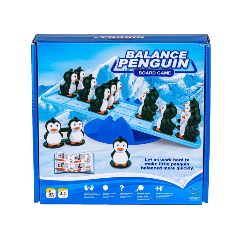 W centrum zestawu znajduje się równoważnia z platformą, na której układa się pingwinki o różnych "wagach" — pojedyncze, podwójne i potrójne. Zadaniem gracza jest tak dobrać i umieścić figurki, aby huśtawka pozostała w poziomie; instrukcje w książeczce pokazują, jakiego rodzaju i jakiej liczby pingwinków użyć do wyrównania, ale miejsce ich ułożenia zależy od dziecka, co rozwija kreatywność i myślenie przestrzenne.