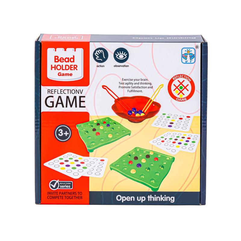 Gra edukacyjna: Karty i kolorowe kulki — zestaw z 30 kartami, 40 kulek i podstawką 18 × 18 cm, zapakowany w pudełko 22 × 21 × 7 cm. To dynamiczna układanka na refleks dla 1–2 graczy, która ćwiczy spostrzegawczość i zręczność oraz uczy szybkiego odwzorowywania wzorów; gra polega na jak najszybszym ułożeniu kulek zgodnie z wylosowaną kartą. Zestaw zawiera 2 podstawki, 1 miseczkę i 2 szczypce, średnica kulki 1,5 cm, przeznaczony dla dzieci powyżej 3 roku życia. Idealna na imprezy rodzinne i ćwiczenie koordynacji wzrokowo-ruchowej — rozwija koncentrację i zdolności manualne już podczas zabawy.