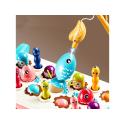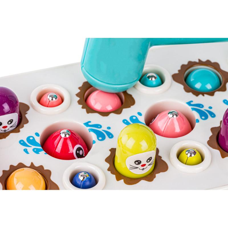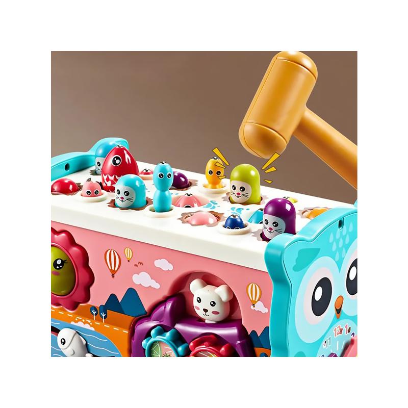 Produkt oferuje aż osiem różnych aktywności, dzięki którym dziecko łatwiej poznaje kolory, kształty oraz podstawy muzyki i czasu. Kolorowe zębatki, cymbałki oraz zegar z ruchomymi wskazówkami angażują uwagę i zachęcają do samodzielnej eksploracji. Przykładowo, uderzanie młoteczkiem w wyskakujące zwierzątka rozwija zręczność i koordynację, a „łowienie” rybek na wędkę uczy cierpliwości i precyzji.