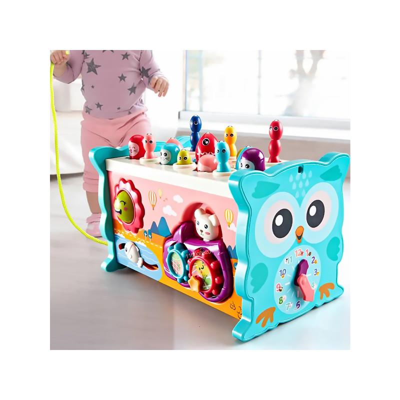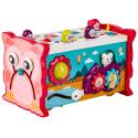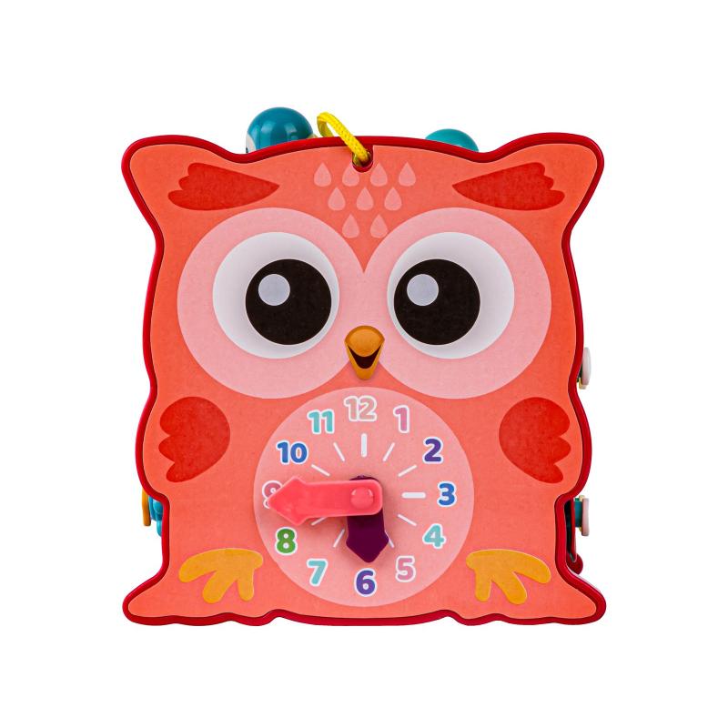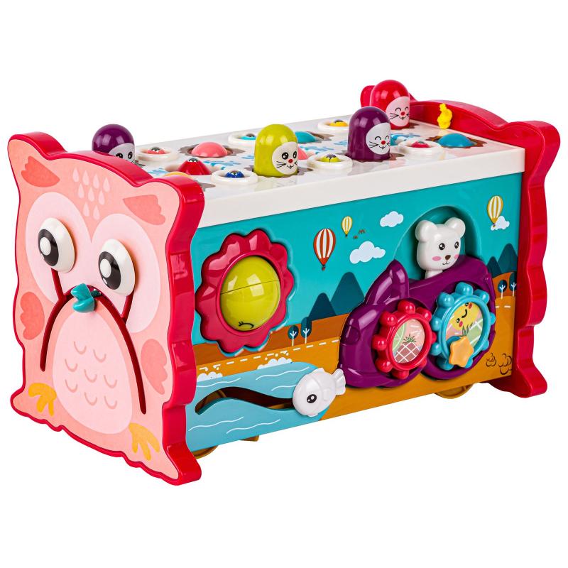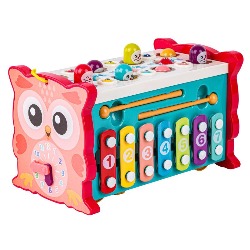 - Zabawka kompleksowo wspiera rozwój zdolności manualnych, intelektualnych oraz sensorycznych. Dzięki różnorodnym aktywnościom dziecko uczy się rozpoznawania kolorów, kształtów, ćwiczy koordynację ręka-oko i rozwija zmysł słuchu poprzez grę na cymbałkach. Dodatkowo elementy takie jak ruchome oczka czy zegar sprzyjają logicznemu myśleniu i cierpliwości.