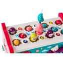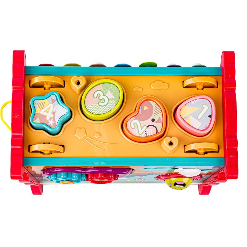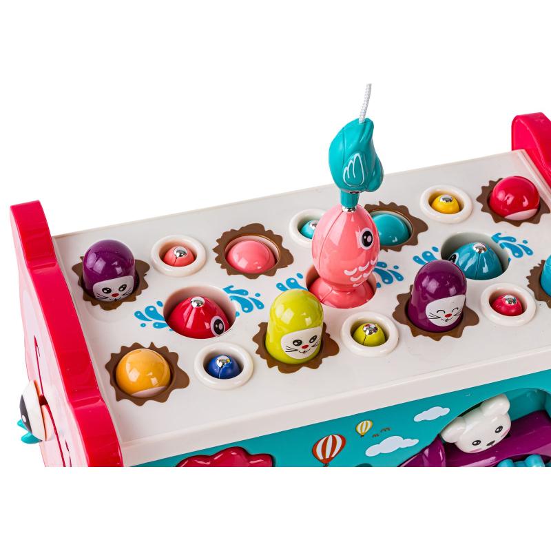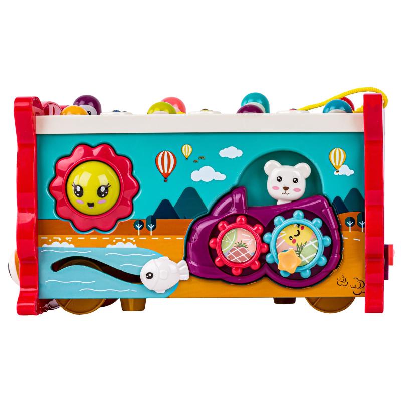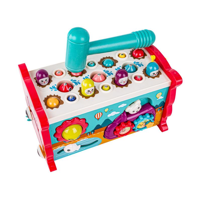 Wszystkie elementy zostały rozmieszczone na sześciu ściankach, co zapewnia długotrwałe zajęcie i nie pozwala szybko się znudzić. Gra zręcznościowa z młoteczkiem i łowienie rybek to świetne przykłady, jak nauka może przebiegać przez zabawę, rozwijając przy tym zarówno motorykę, jak i spostrzegawczość.