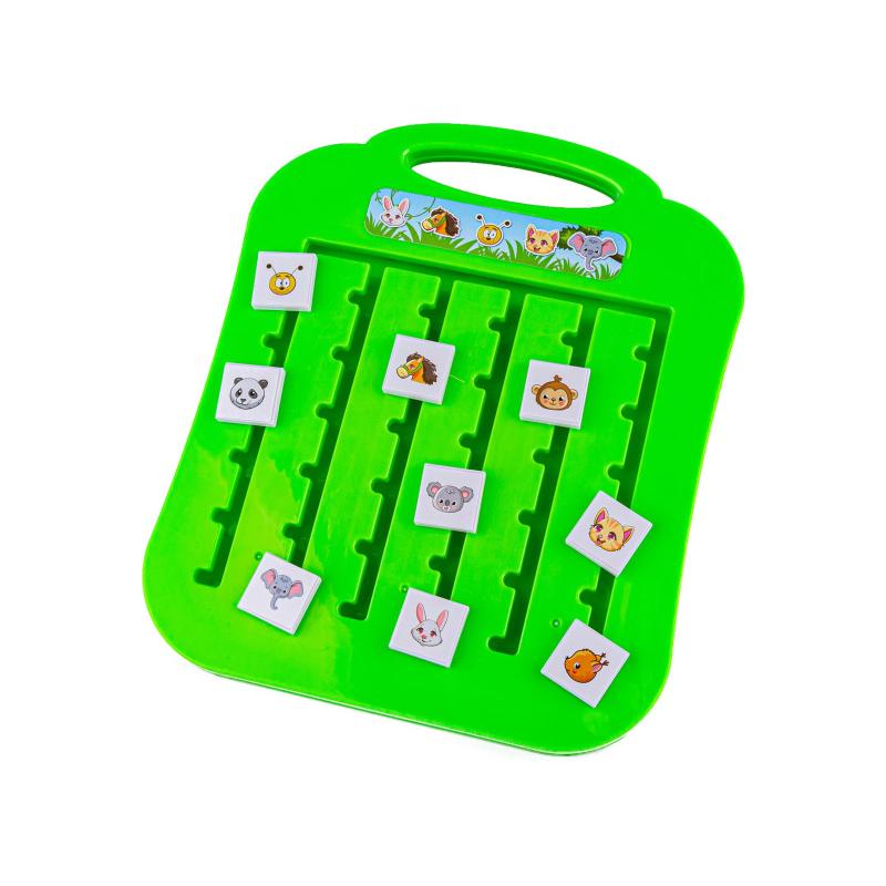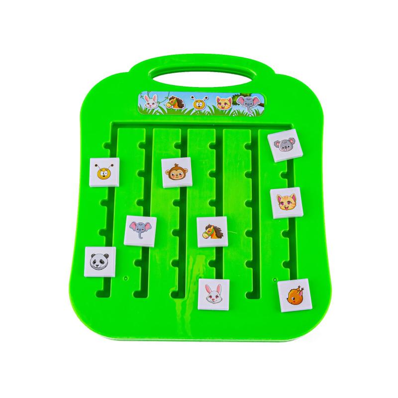 - Zestaw zawiera: planszę z przesuwnymi klockami z motywami zwierzątek, 10 kart z różnymi układami zwierząt, oryginalne opakowanie (w zestawie brak klepsydry)