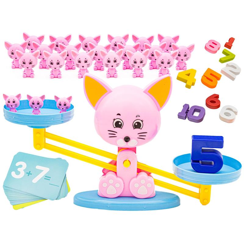 - W zestawie: kolorowa waga szalkowa, odważniki kotki, karty z zadaniami, cyferki, oryginalne opakowanie