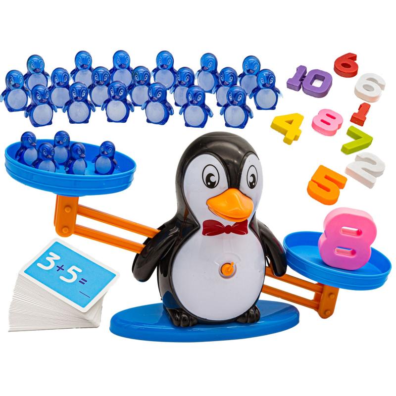 Podczas zabawy dorosły może nadzorować i podsuwać pomysły na eksperymenty: porównywanie masy dwóch przedmiotów, odczytywanie, ile pingwinków potrzeba, by zrównoważyć daną cyfrę, czy układanie prostych działań dodawania i odejmowania. Zestaw rozwija też zdolności manualne i koordynację ruchową, gdy dziecko precyzyjnie układa niewielkie elementy.