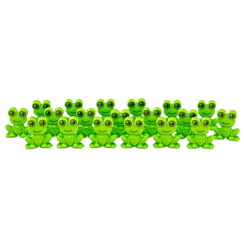 Do zabawy dołączone są 19 małych odważników w kształcie żabek (wymiary ok. 2,7 × 2,4 × 1 cm), które pozwalają na zestawianie różnych kombinacji i ćwiczenie umiejętności dodawania oraz odejmowania. Zabawka zachęca do samodzielnych eksperymentów i rozwija koordynację ruchową oraz precyzję manualną.