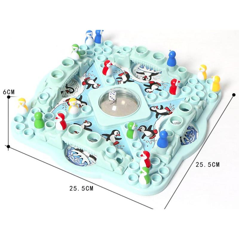 Plansza przenosi graczy w mroźny klimat Antarktydy: estetyczne elementy, kolorowe pingwiny i elementy imitujące lód tworzą atrakcyjną oprawę wizualną, a przezroczysta półkula z kostką eliminuje problem zgubionych oczek. Zabawka wykonana jest z wysokiej jakości, atestowanego tworzywa, bez ostrych krawędzi, co sprawia, że jest bezpieczna dla najmłodszych uczestników zabawy.