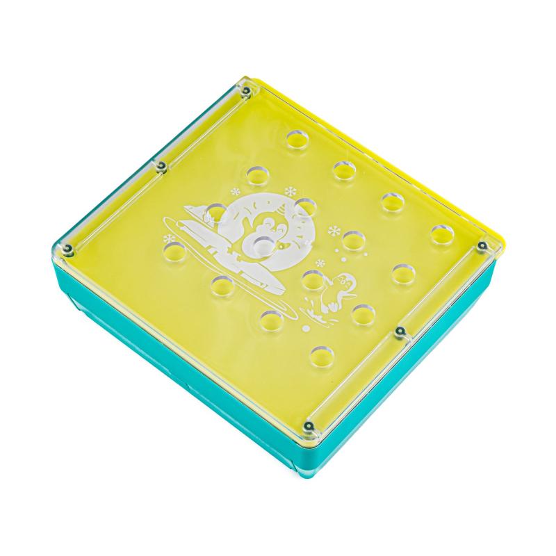 W zestawie znajduje się główna plansza z praktyczną, wysuwaną szufladką, w której po zabawie można schować wszystkie elementy — dzięki temu zabawka nie gubi małych części, a porządek w pokoju jest łatwiejszy do utrzymania. Opakowanie jest oryginalne i poręczne, co ułatwia przechowywanie lub zabranie gry na wyjazd.
