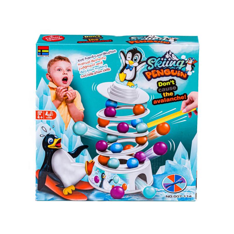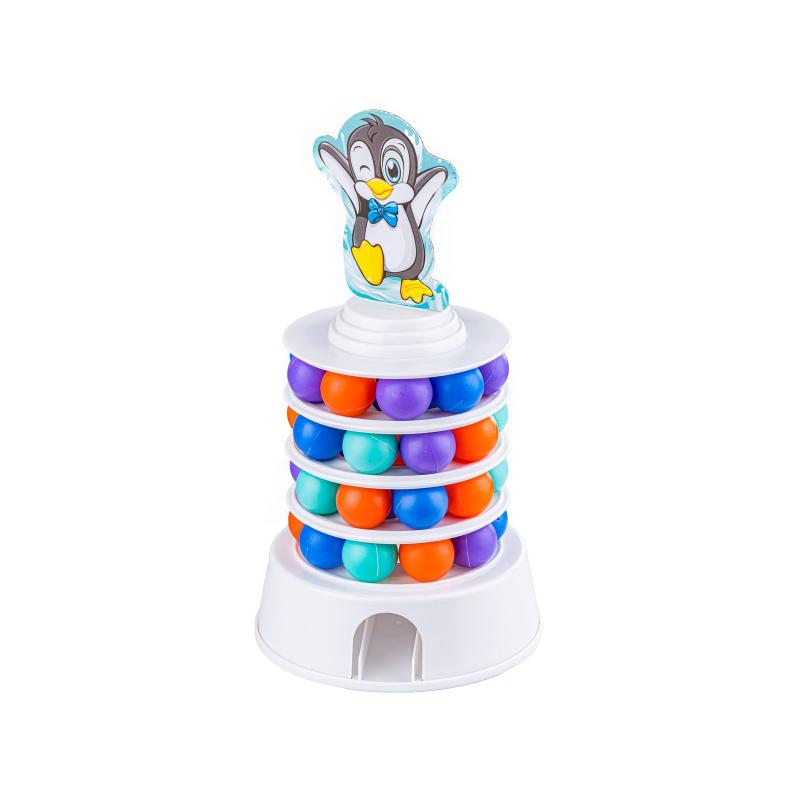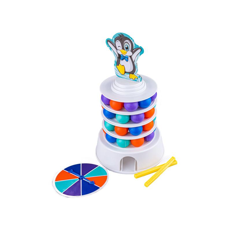 Po ustawieniu podstawy i ułożeniu kolejnych warstw „góry lodowej” rozstawia się piłeczki na platformach, a na szczycie umieszcza pingwinka. Gracze na zmianę losują kolor za pomocą tarczy i starają się za pomocą patyczków umieścić piłeczkę wewnątrz wieży — ruchoma konstrukcja wymusza delikatne, przemyślane ruchy. Gra rozwija zręczność manualną, spostrzegawczość i umiejętność przewidywania zachowania niestabilnej konstrukcji.