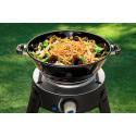 Grill gazowy CADAC turystyczny Safari Chef Lite 30mbar to lekki, wszechstronny grill gazowy ważący mniej niż 4 kg z automatycznym zapalnikiem piezo i składanymi, gumowymi nóżkami. Wyposażony jest w palnik ze stali nierdzewnej oraz 4 wymienne powierzchnie do gotowania: nieprzywierającą płytę grillową (28 cm), ruszt z misą, pokrywę/garnek z emalią porcelanową i podstawkę pod garnek. Zasilany jest gazem niskociśnieniowym 2,8 kPa (wąż i regulator sprzedawane osobno). Do zestawu dołączona jest torba do przenoszenia oraz granulat Aroma Smak. Idealny do grillowania na tarasie, balkonie, podczas kempingu i wycieczek.