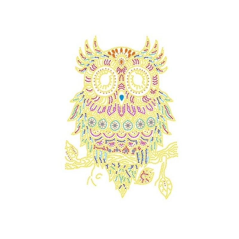 Zestaw Haft diamentowy KOLOROWA SOWA zawiera wszystko, czego potrzebujesz, by krok po kroku ułożyć barwną mozaikę: płótno z warstwą kleju i nadrukowanym wzorem, diamenciki w różnych kolorach, kształtach i rozmiarach, aplikator do nakładania kryształków oraz plastikowy pojemnik do ich segregacji. Całość zapakowano w oryginalne opakowanie, a suchy klej na kostkach umożliwia szybkie i wygodne nabieranie kryształków aplikatorem.