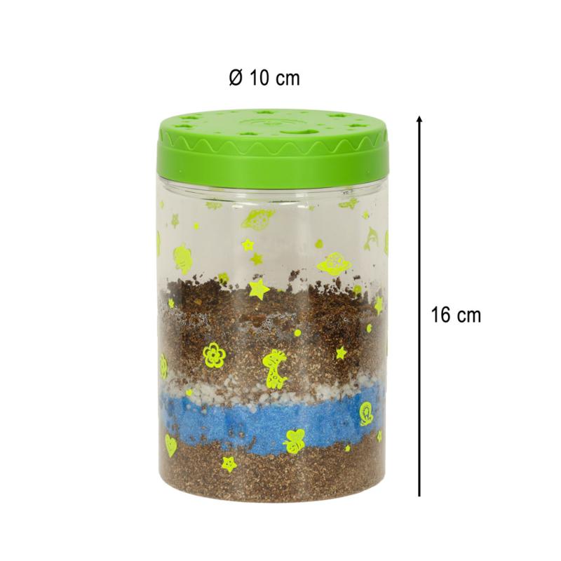 Lampka LED w pokrywce terrarium pełni podwójną funkcję – z jednej strony stanowi delikatne oświetlenie nocne, które pomaga dziecku zasnąć w przyjaznej atmosferze, a z drugiej dostarcza światło niezbędne do fotosyntezy roślin. Dzięki temu rośliny mają wsparcie w rozwoju nawet w warunkach ograniczonego naturalnego światła. Lampka jest zasilana bateriami dołączonymi do zestawu, co zapewnia wygodę użytkowania bez konieczności podłączania do sieci.