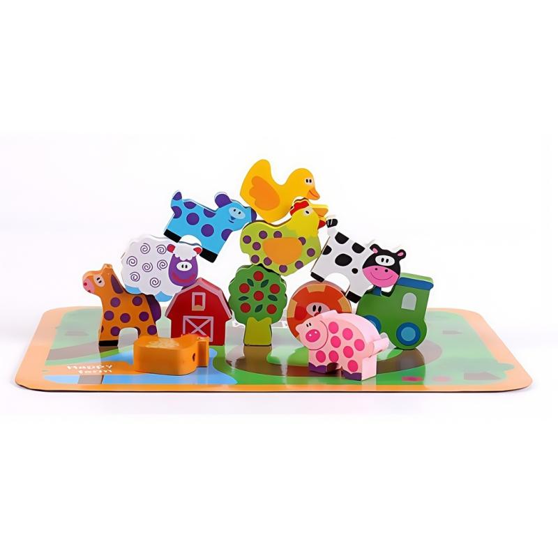 Zabawka stymuluje koordynację wzrokowo-ruchową oraz wspomaga ruchy precyzyjne dzięki nawlekaniu oraz układaniu na planie farmy. Użycie różnych kształtów i kolorów dodatkowo ułatwia rozpoznawanie i nazywanie zwierząt oraz elementów otoczenia. Czas spędzony z tym zestawem to nie tylko frajda, ale i efektywny trening dla małych rączek.