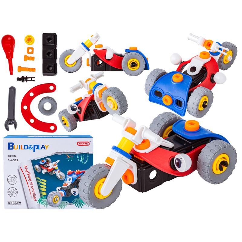 Klocki Elastyczne, Konstrukcyjne 40 El. Motocykl, Trójkołowy Pojazd Do Rozkręcania I Skręcania 2w1