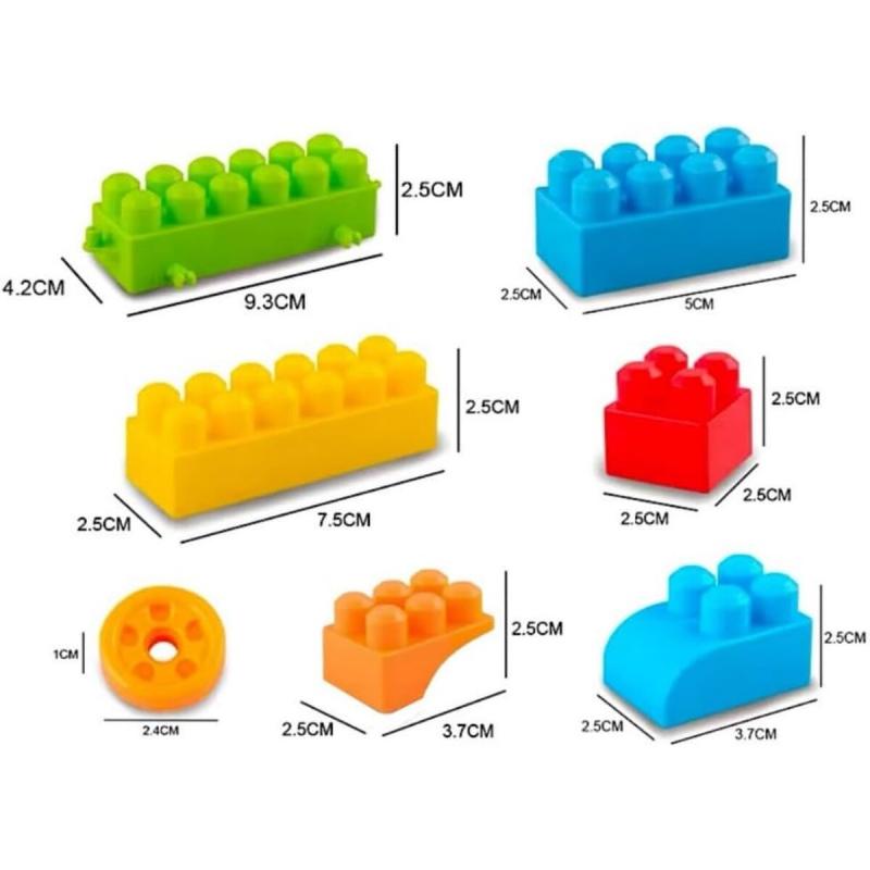 - Zawiera: klocki do układania w różnych kolorach i kształtach