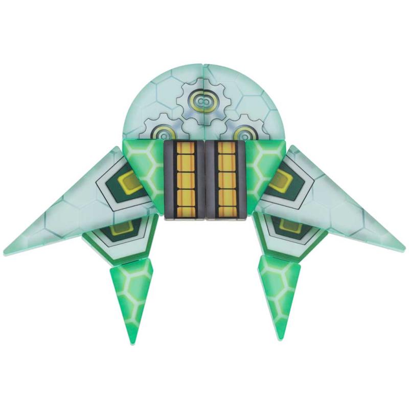 Zestaw wykonano z bezpiecznego dla dzieci tworzywa sztucznego połączonego z solidnymi elementami magnetycznymi. Kolory klocków w odcieniach zieleni, ciemnoszarości i żółci nadają konstrukcjom atrakcyjny, nowoczesny wygląd. Całość waży 1,8 kg i jest zapakowana w praktyczne kartonowe pudełko z uchwytem, które ułatwia przechowywanie i przenoszenie zestawu.
