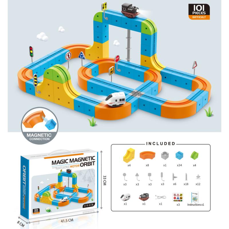 - Nazwa: Klocki magnetyczne konstrukcyjne tor wyścigowy pociągi 101 elementów