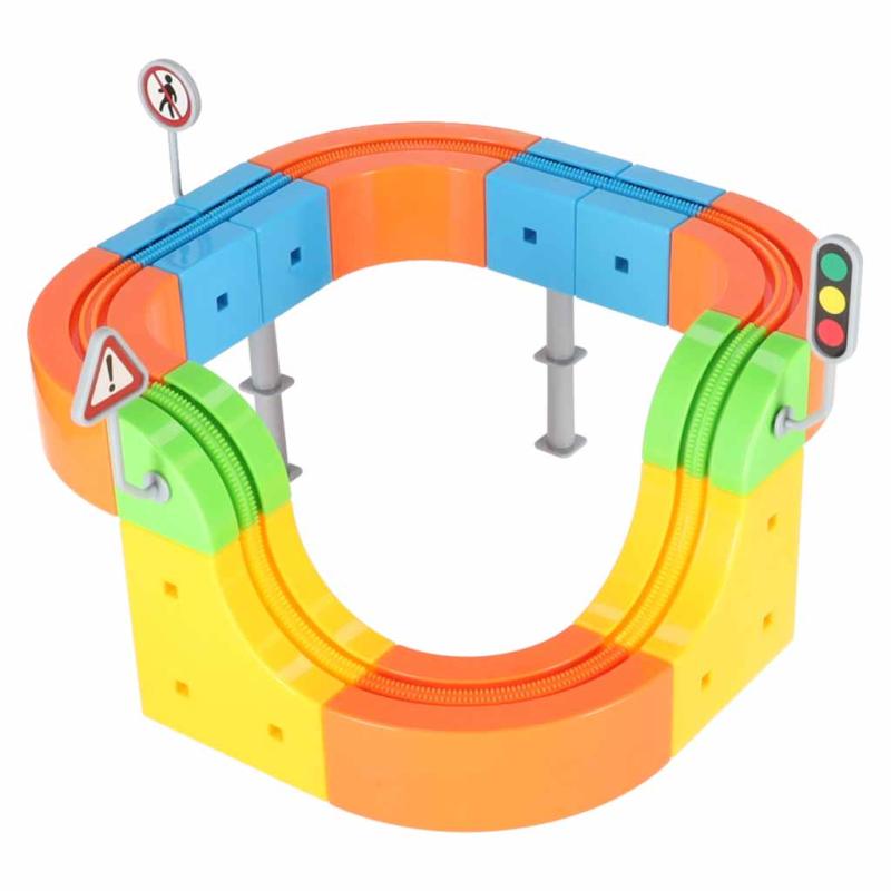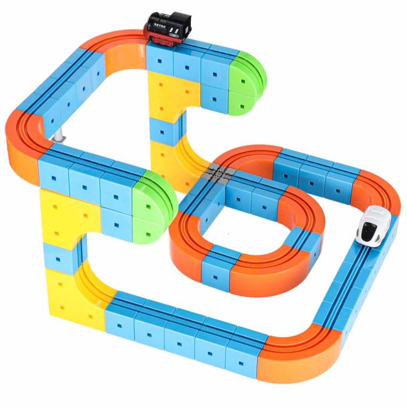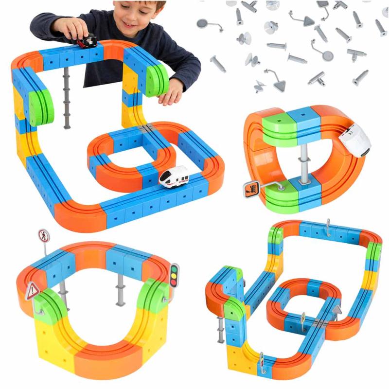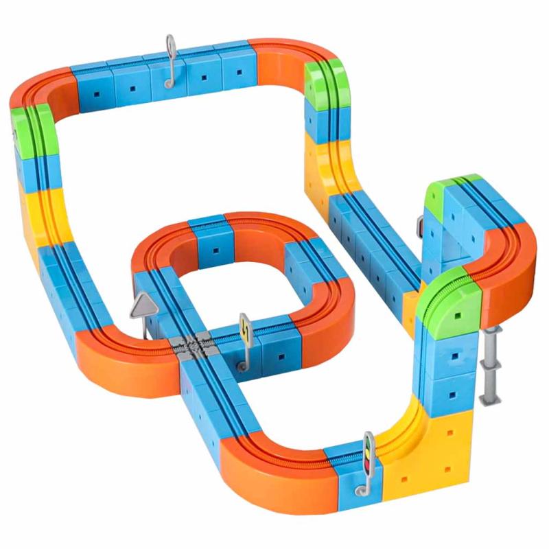 Zestaw służy do budowy torów wyścigowych i pociągów w formie zabaw konstrukcyjnych. Nadaje się do ćwiczenia wyobraźni przestrzennej, koordynacji ręka–oko oraz pracy zespołowej; można go używać w domu, w grupach przedszkolnych i podczas zajęć kreatywnych.