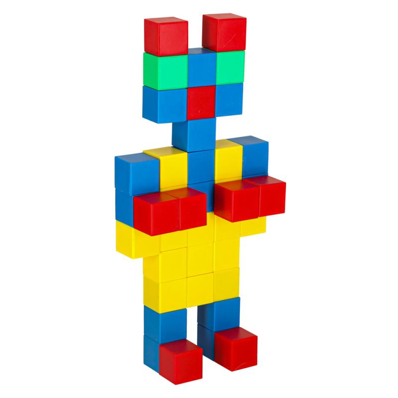 Klocki magnetyczne sześcienne kostka sześcian figury magnes 64 el. to zestaw 64 plastikowych klocków o wymiarach 2,5 × 2,5 cm, przeznaczony dla dzieci powyżej 3 lat. Elementy łączą się za pomocą magnesów, co pozwala na stabilne budowanie różnorodnych konstrukcji w intensywnych kolorach: zielonym, żółtym, czerwonym i niebieskim. Produkt wspiera rozwój zdolności manualnych, motoryki małej oraz wyobraźni przestrzennej. Klocki umożliwiają tworzenie prostych i złożonych figur, sprzyjając jednocześnie nauce współpracy podczas wspólnej zabawy. Zestaw zapakowany jest w kartonowe opakowanie o wymiarach 20,5 × 10,5 × 5,5 cm.