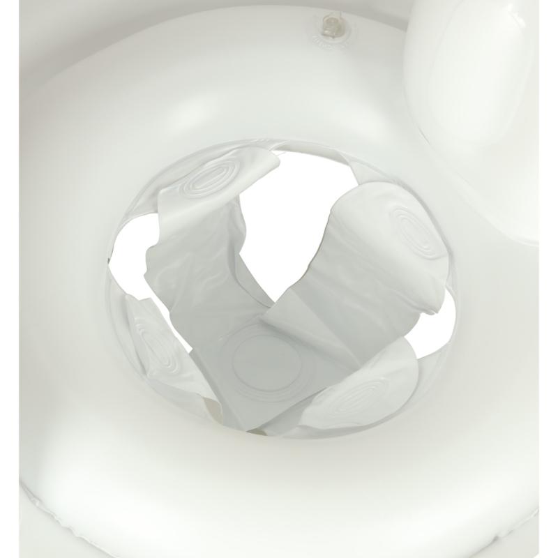 Solidne siedzisko zapewnia wygodną pozycję, a otwory na nóżki umożliwiają swobodę ruchów, co znacznie ułatwia naukę pływania i daje poczucie bezpieczeństwa zarówno dziecku, jak i opiekunowi.