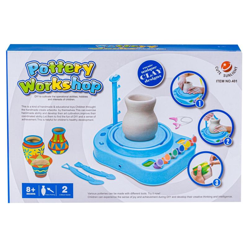 Koło garncarskie w atrakcyjnym różowym kolorze wyposażono w obrotową platformę, ułatwiającą formowanie estetycznych naczyń i figurek. Dołączona masa garncarska pozwala na swobodną pracę, a gdy się skończy – można ją uzupełnić oferowaną oddzielnie gliną. Dostępne są także 6 farb z pędzelkami, które umożliwiają ozdobienie własnoręcznie wykonanych dzieł, a wbudowane otwory do mieszania farbek ułatwiają pracę nad kolorami.