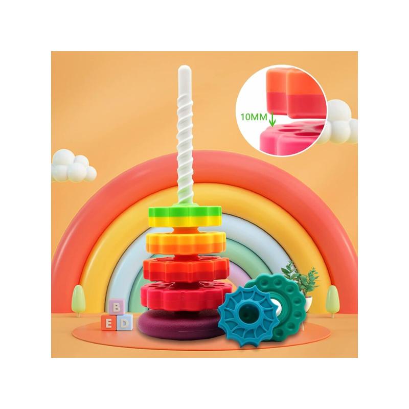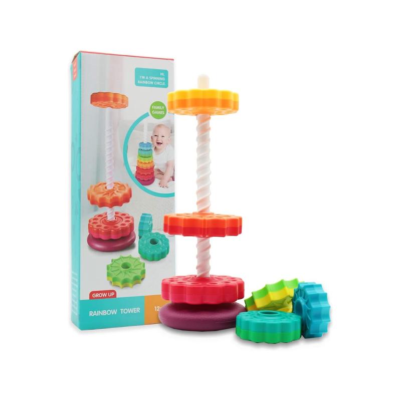 Kolorowa Piramida Sensoryczna Zakręcona Wieża Edukacyjna Krążki Do Układania
