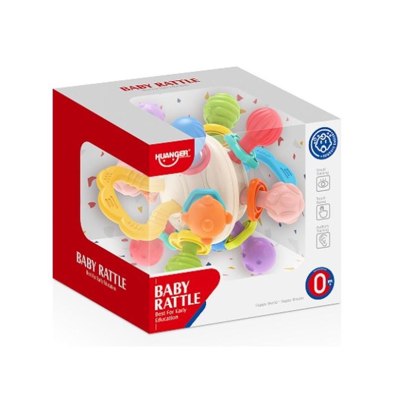 Kula pełni też funkcję grzechotki: wewnętrzne elementy wprowadzają dźwięk przy potrząsaniu, co ćwiczy słuch i reakcję na bodźce dźwiękowe. Lekka konstrukcja ułatwia chwytanie nawet najmniejszym rączkom, a kompaktowe rozmiary sprawiają, że zabawka jest łatwa do zabrania w podróż czy na spacer.