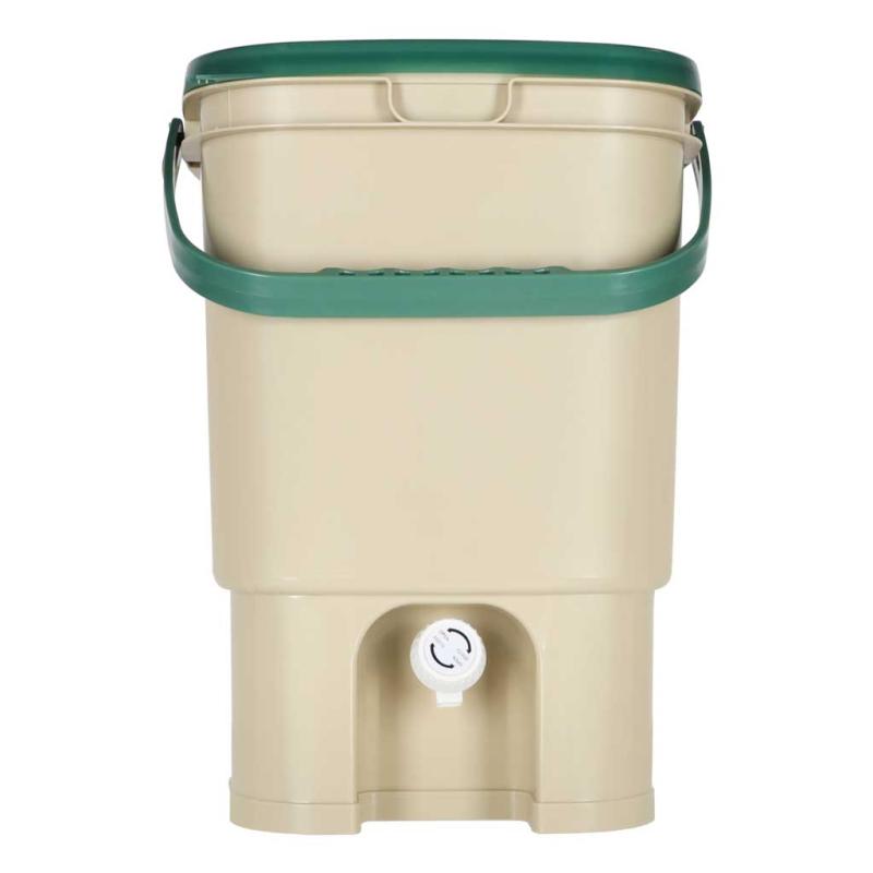 Kompostownik kuchenny LUARO 15L — pojemność 15 L, wysokość 41,3 cm, waga 1,4 kg, zaprojektowany do wygodnego zbierania bioodpadów w domu. Zamykany pojemnik z kranikiem i tacką na osad ogranicza zapachy i ułatwia przechowywanie obierek, fusów i skorup w kuchni. W zestawie znajdziesz kubek 17 × 7 cm, łyżkę 15 × 5,5 cm oraz ubijak 22 × 7,5 cm; maksymalne obciążenie 19 kg i kolorystyka w odcieniach beżu i zieleni. Dzięki kompaktowym wymiarom i rączce przenoszenie i segregacja odpadów staje się prostsza, a resztki zamienisz w naturalny nawóz.