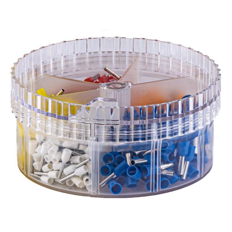 Konektory kablowe Zestaw Tulejek — 500 szt. Ten komplet tulejek do zaciskarki sprawdzi się podczas prac elektrycznych i warsztatowych, pozwalając szybko i bezpiecznie zakończyć przewody oraz utrzymać porządek dzięki przejrzystemu opakowaniu.