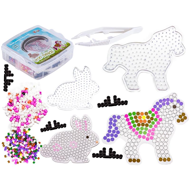 Koraliki Do Prasowania Szablony Jednorożec, Królik, Zestaw 2000 Elementów, Prasowanka, Kuferek