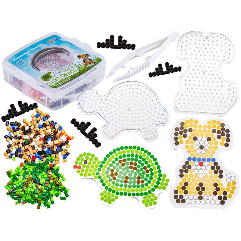 Koraliki Do Prasowania Szablony Piesek, Żółwik, Zestaw 2000 Elementów, Prasowanka, Kuferek
