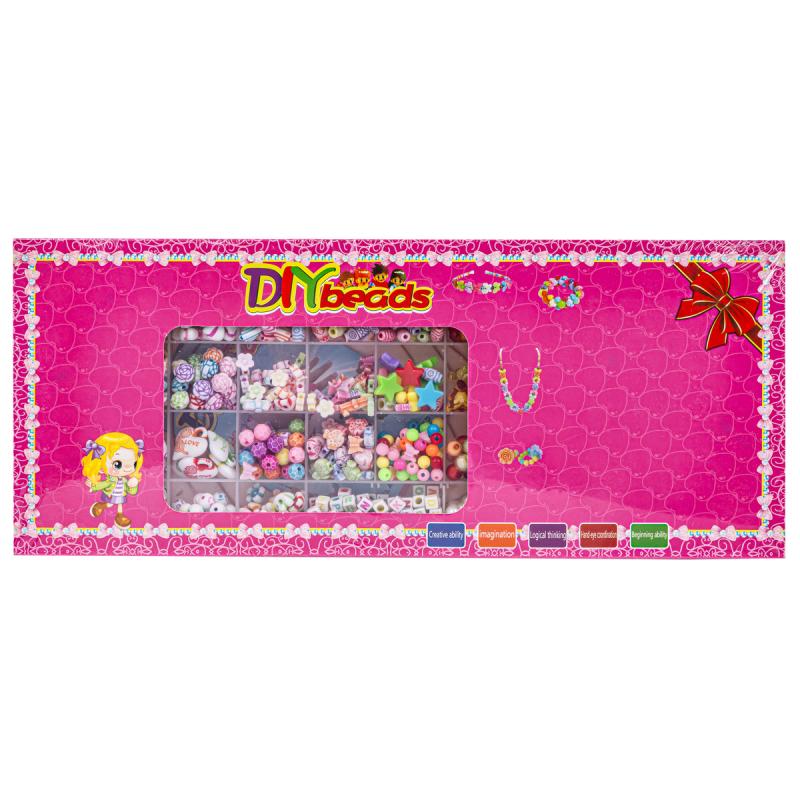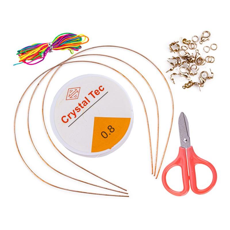 - Zawartość zestawu: elastyczna, rozciągliwa żyłka; koraliki w różnych kolorach, kształtach i rozmiarach; koraliki z wybitymi literkami; perełki; 3 przepaski do ozdobienia; mini nożyczki; kolorowe sznurki; dodatkowe akcesoria m.in. zapinki; oryginalne opakowanie