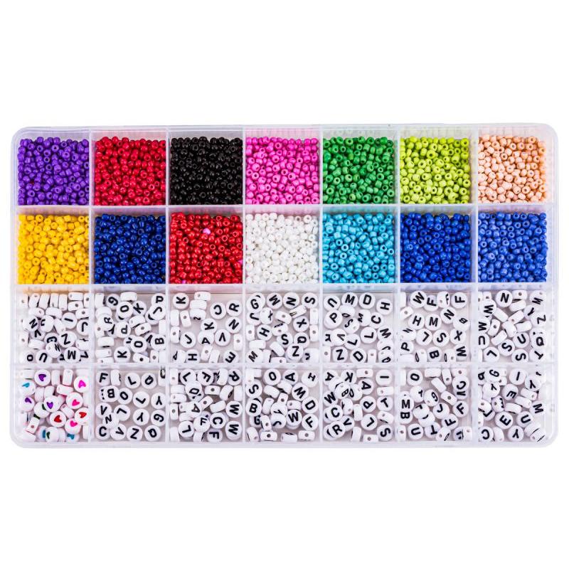 Koraliki zestaw do tworzenia bransoletek kolorowe z etui 19 × 13 × 2 cm, średnica mniejszych koralików ok. 3 mm, produkt nieodpowiedni dla dzieci poniżej 6 roku życia. Zestaw zawiera elastyczną, rozciągliwą żyłkę w dwóch rozmiarach, mini koraliki, większe z literkami i serduszkami oraz praktyczne zapinki i mini nożyczki, co ułatwia szybką pracę. Kolorowe elementy pozwalają na tworzenie spersonalizowanej biżuterii — bransoletek, naszyjników i zawieszek — rozwijając kreatywność oraz sprawność manualną. Idealny na zabawę i prezent, gdy dziecko chce wykonać własne, unikalne ozdoby dla siebie i koleżanek.