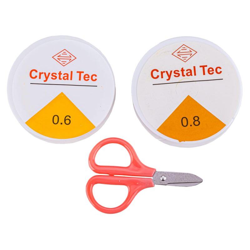 Do zestawu dołączono elastyczne żyłki w dwóch rozmiarach, które są rozciągliwe i trwałe przy normalnym użytkowaniu; do wykończenia projektów użyj dołączonych zapinek lub zawiąż trwały supeł zgodnie z instrukcją opakowania. Przy większym obciążeniu lepiej zastosować mocniejsze zakończenia lub podwójnie przewiązać żyłkę.