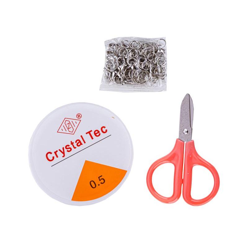 - Zawartość zestawu: elastyczna, rozciągliwa żyłka; mini koraliki w różnych kolorach; mini nożyczki; dodatkowe akcesoria (m.in. zapinki); oryginalne opakowanie