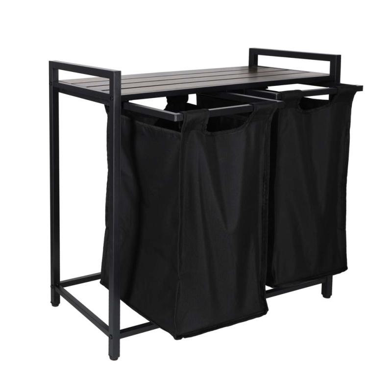 Podczas rodzinnych dni pełnych prania, możliwość segregacji na dwa osobne kosze pozwala szybko oddzielić jasne i ciemne tkaniny. Półka nad pojemnikami ułatwia przechowywanie środków piorących tuż pod ręką, co przyspiesza przygotowanie do prania. Wygodne mocowanie koszy na rzepy umożliwia błyskawiczny montaż i demontaż worków, zaś ich pojemność 76 litrów pozwala pomieścić nawet większe ilości brudnych ubrań.