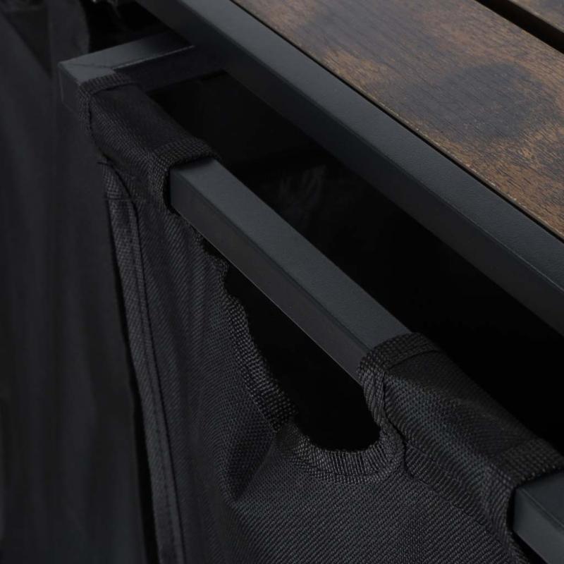 Regularne czyszczenie powierzchni blatu oraz worków pozwoli zachować estetykę produktu. Worki można łatwo zdemontować i wyprać w pralce, co jest szczególnie ważne, gdy zbierają się na nich zabrudzenia. Metalowy stelaż wymaga jedynie przetarcia wilgotną ściereczką, a dzięki powłoce proszkowej pozostanie odporny na rdzewienie i uszkodzenia mechaniczne.