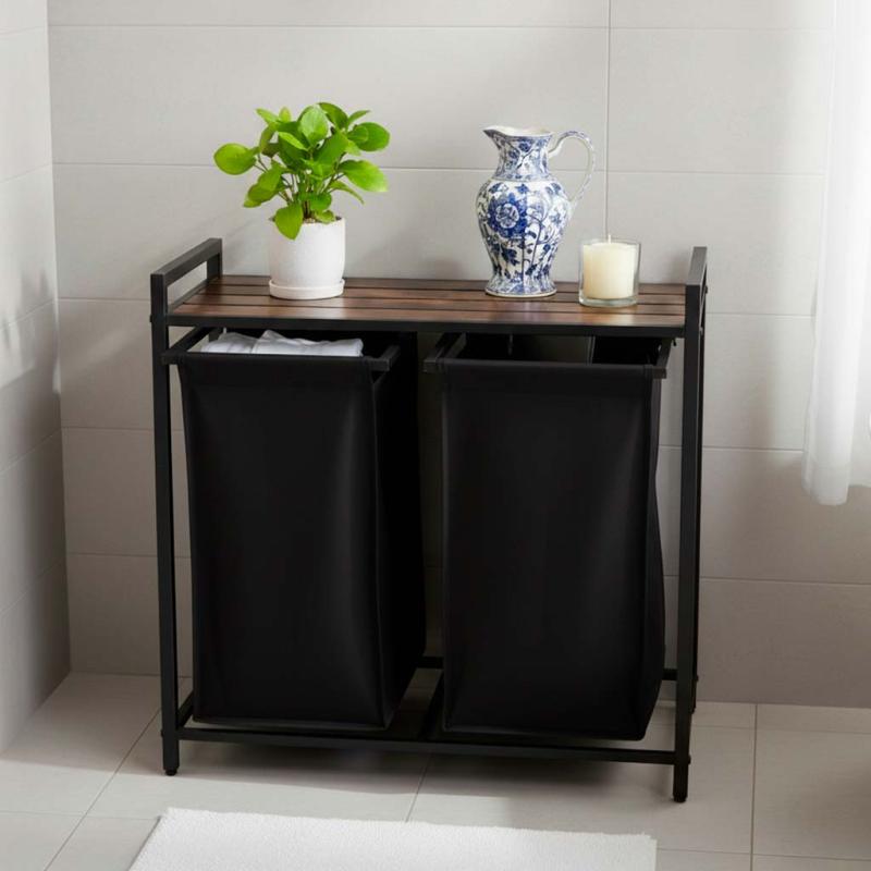 Kosz na pranie bieliznę 2 komory z półką blatem pojemnik loft 76l