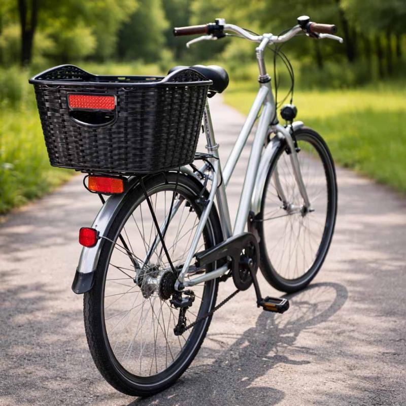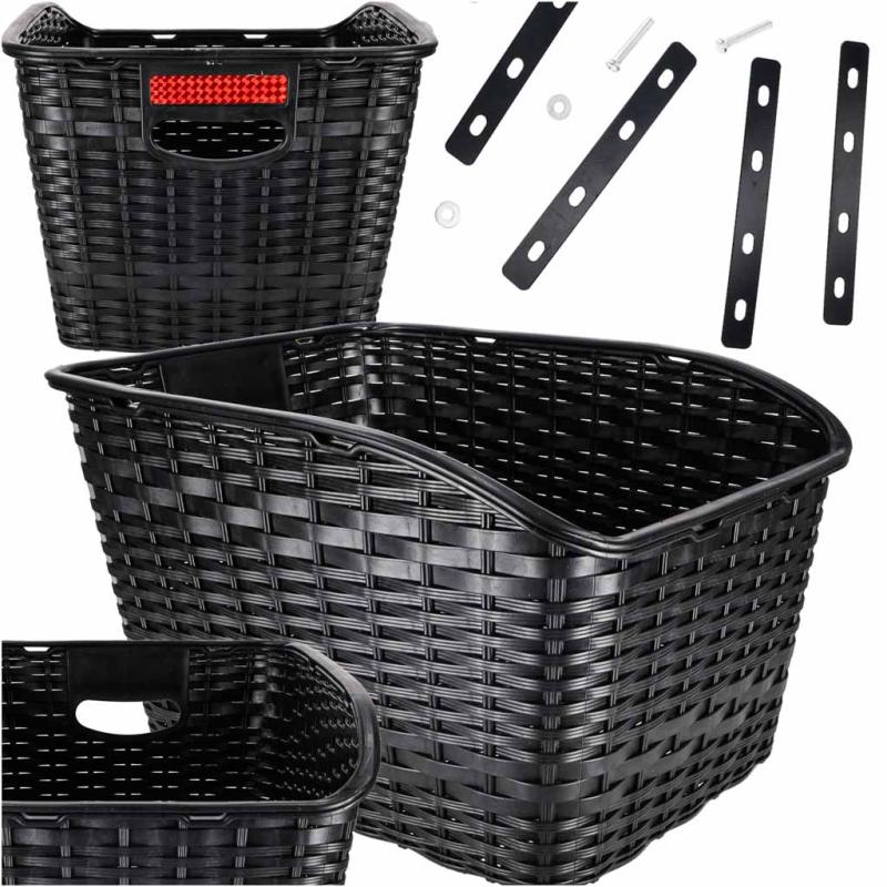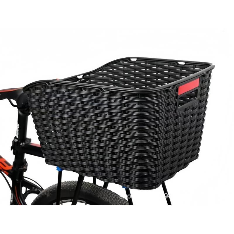 Kosz rowerowy tylni rattanowy, 18L pojemności, max. obciążenie 8 kg, wymiary 41,5 × 24,3 × 32,5 cm — stylowy, prostokątny kosz na tylny bagażnik, który łączy estetykę z praktycznością. Posiada wyraźny odblask z tyłu dla lepszej widoczności i wysokie ścianki zapobiegające wypadaniu rzeczy. Solidna konstrukcja z PP i lekka waga 0,89 kg zapewniają trwałość bez znaczącego obciążenia roweru; w zestawie są 4 blaszki montażowe i śruby (długość 4 cm). Idealny na zakupy i codzienne dojazdy — mieści torbę lub plecak, ułatwia pakowanie i stabilnie trzyma bagaż podczas jazdy.