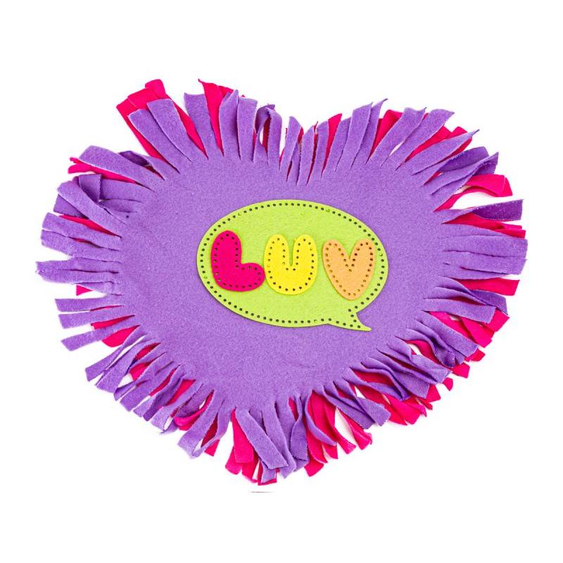 - Zawartość: 2 nacięte części poduszki w kształcie serca, dodatkowe elementy (naszywki z literkami), igła, kolorowe nici, wypełnienie, instrukcja obrazkowa na opakowaniu, oryginalne opakowanie