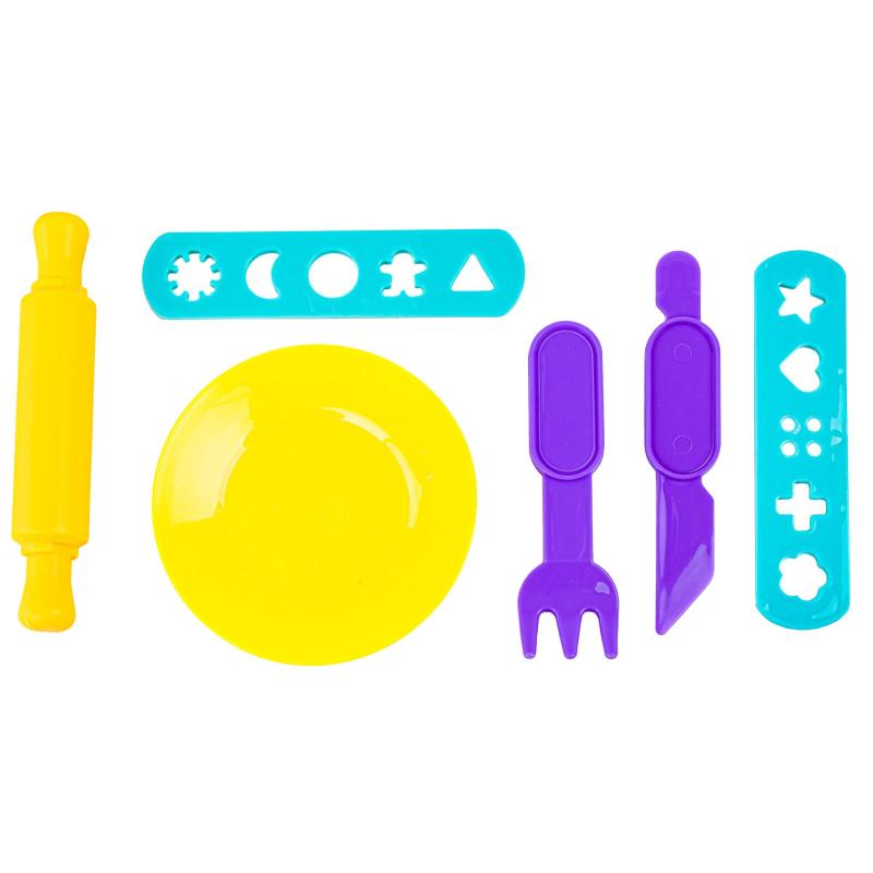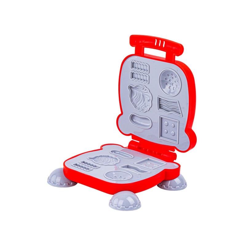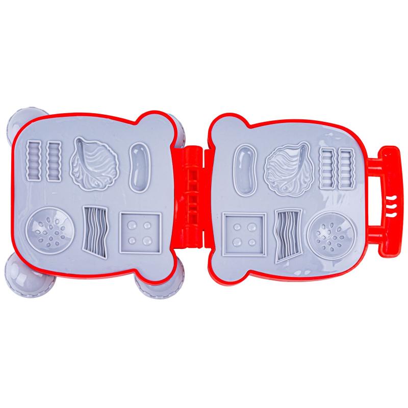 - Zawartość zestawu: maszynka do odciskania (toster), ręczna wyciskarka do makaronu z 2 nakładkami, wałek, talerzyk, widelczyk, nożyk, ciastolina w 6 kolorach, oryginalne opakowanie